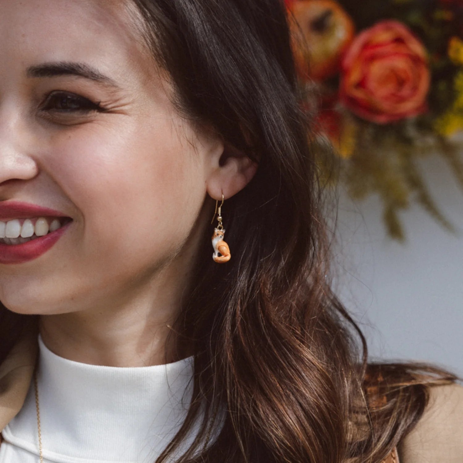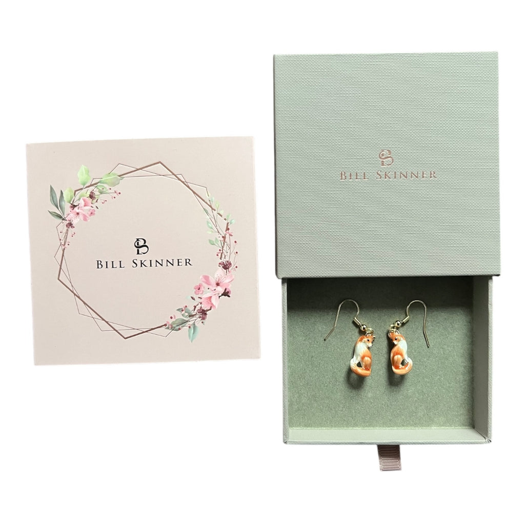 Immerse yourself in the charm of nature with these exquisite Fox Drop Earrings, showcasing fine craftsmanship. Intricately hand-enamelled, they capture the beauty and playfulness of woodland life, and show an affinity with nature.