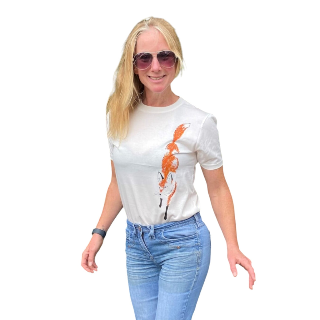 Some while ago we found a box of artwork dating back to the 80’s and 90’s – back to our beginning. We re-discovered artist Thea Olrog’s ‘Running Fox’ design and fell in love with it all over again. It’s perfect for our new  t-shirt and we think it’s as fresh and relevant now as it was then. We hope you agree! Thanks to Octomuffin Printing for bringing Thea’s design to life.