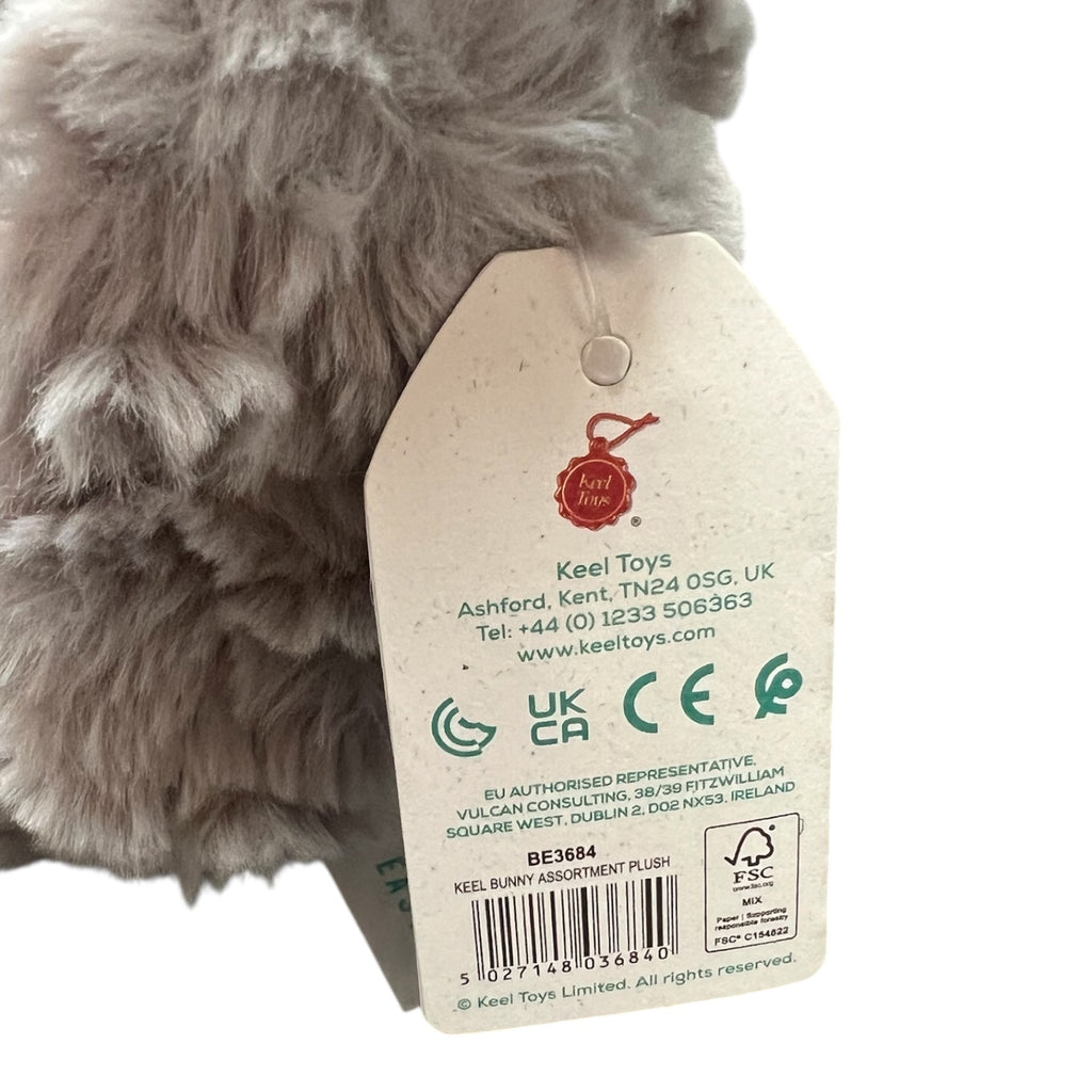 A delightful grey rabbit soft toy that stands at a charming 25 cm high, (when sitting as in pics).
